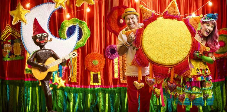 O espetáculo híbrido ‘Cafuné’ nos transporta para um universo imaginário inspirado nos folguedos populares, nas danças tradicionais e nos ritmos brasileiros. Criada pela Cia. Tempo de Brincar, a peça faz uma fusão de dança, artes visuais, música e performance, carregando referências que vão desde o balé da escola Bauhaus aos parangolés de Hélio Oiticica, tudo isso num cenário supercolorido. A trilha sonora executada ao vivo bebe na fonte das composições do maestro Villa Lobos, com canções lúdicas e delicadas que brincam com nuvens, borboletas, Sacis e barquinhos de papel envoltas pela diversidade de ritmos brasileiros como ciranda, xote, toadas e cantigas de roda em arranjos poéticos.