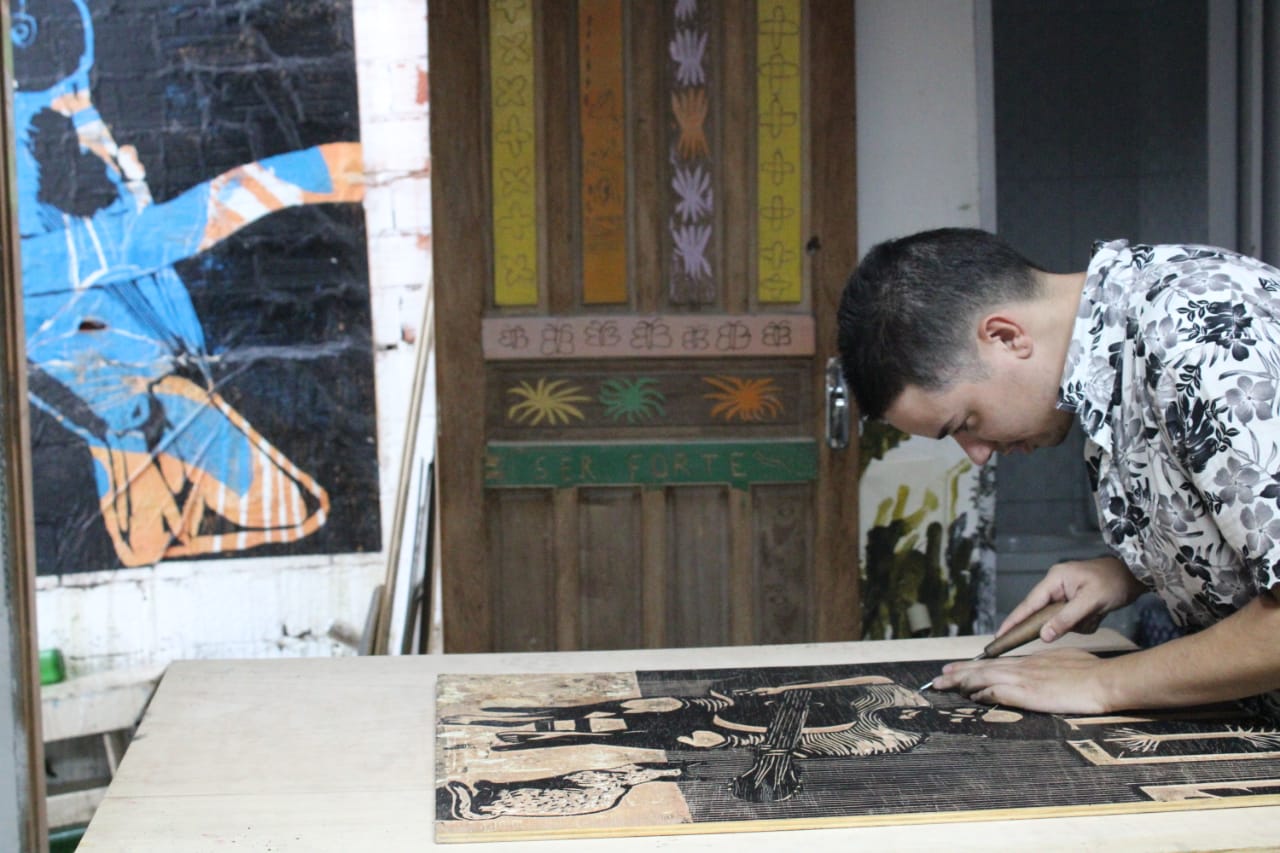 Para além das confluências em seus trabalhos com a madeira, os artistas escolhidos para compor a mostra – Santidio Pereira, Luisa Almeida, Gabriel Balbino, Kamila Vasques, Igor Santos, Julia Bastos, Rafael Toledo e Fernando Melo – também compartilharam vivências dentro dos mesmos ateliês e acompanham os trabalhos uns dos outros pelas redes sociais. “Essa reunião evidencia a importância do ambiente de formação e dos ateliês de gravura disponíveis para o exercício e o aprofundamento da prática no país”, comenta Célia.